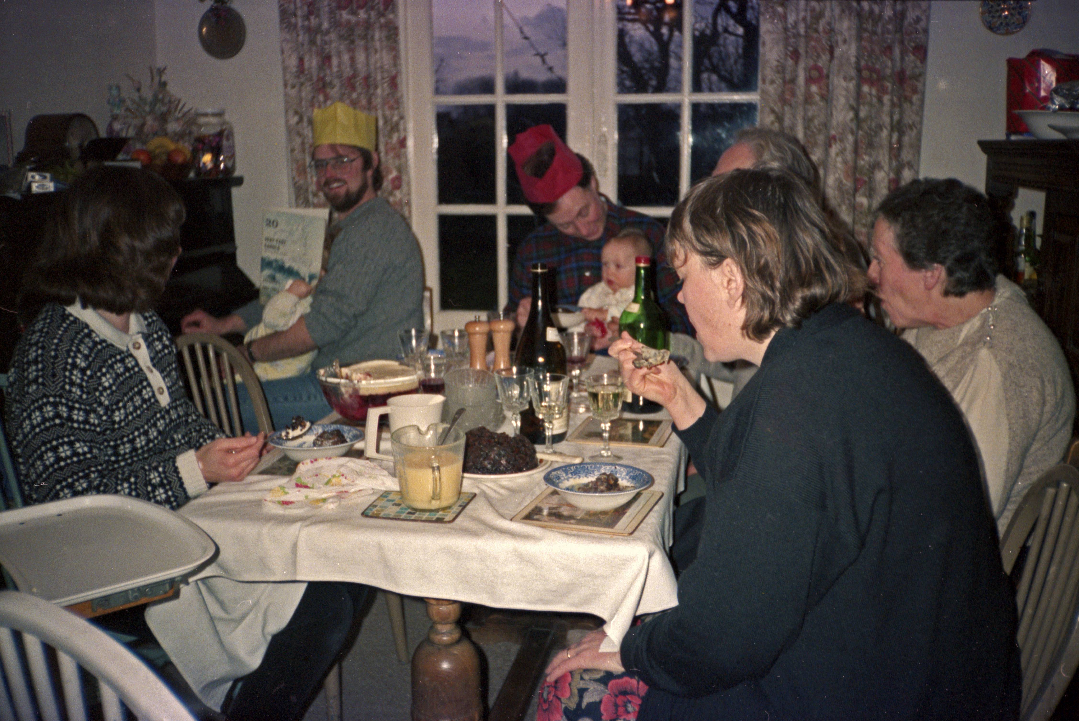 From left: Julia Parker, Steve Parker (with Joanna on lap), Stephen Bishop (with Edward on lap), Alison Bishop, John Bishop (top of head), Lillian Caswell