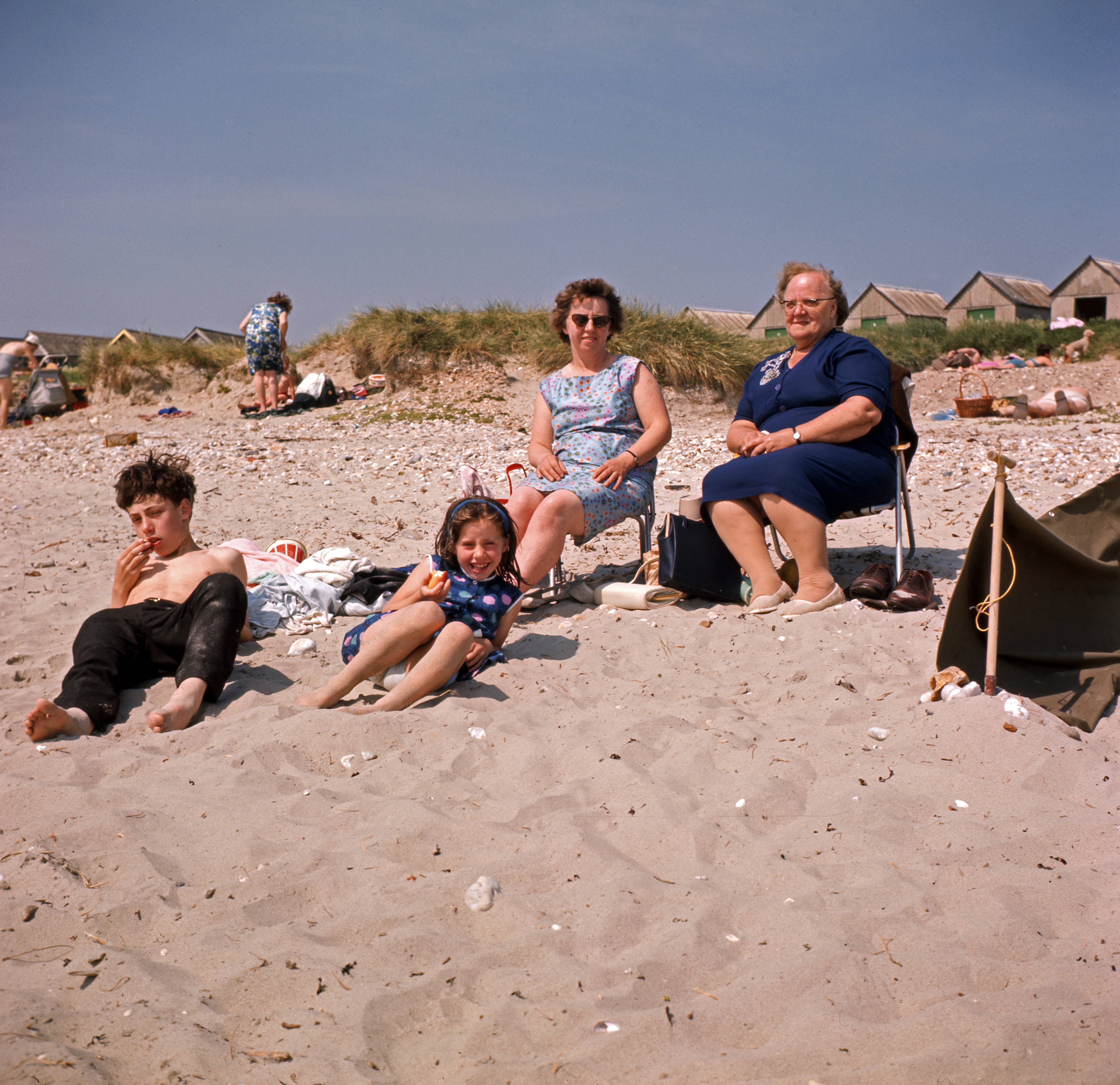 Stephen, Julia and Doris Bishop with Lillian Porter on beach