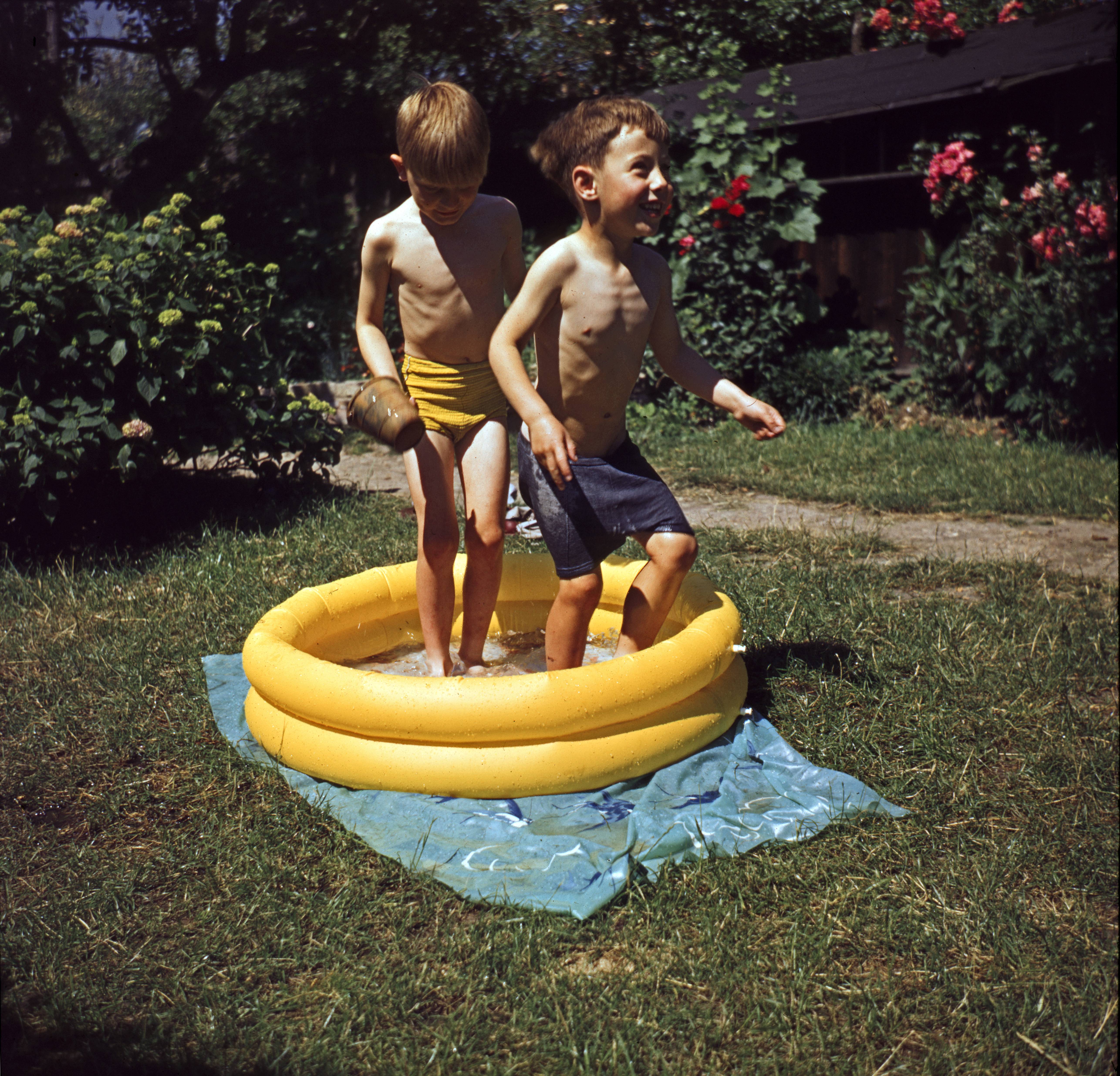 David Caulder and Stephen Bishop in paddling pool
