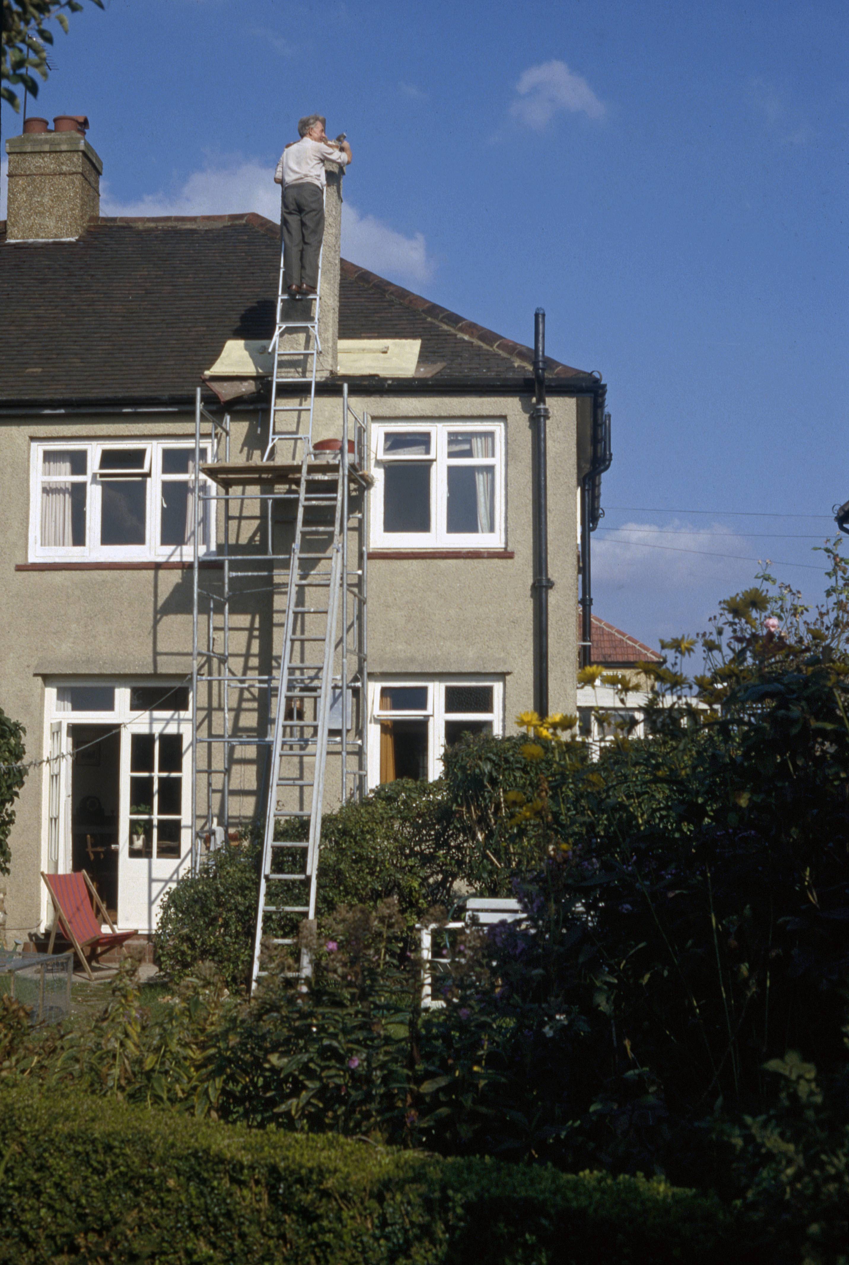 John Bishop repairing chimney