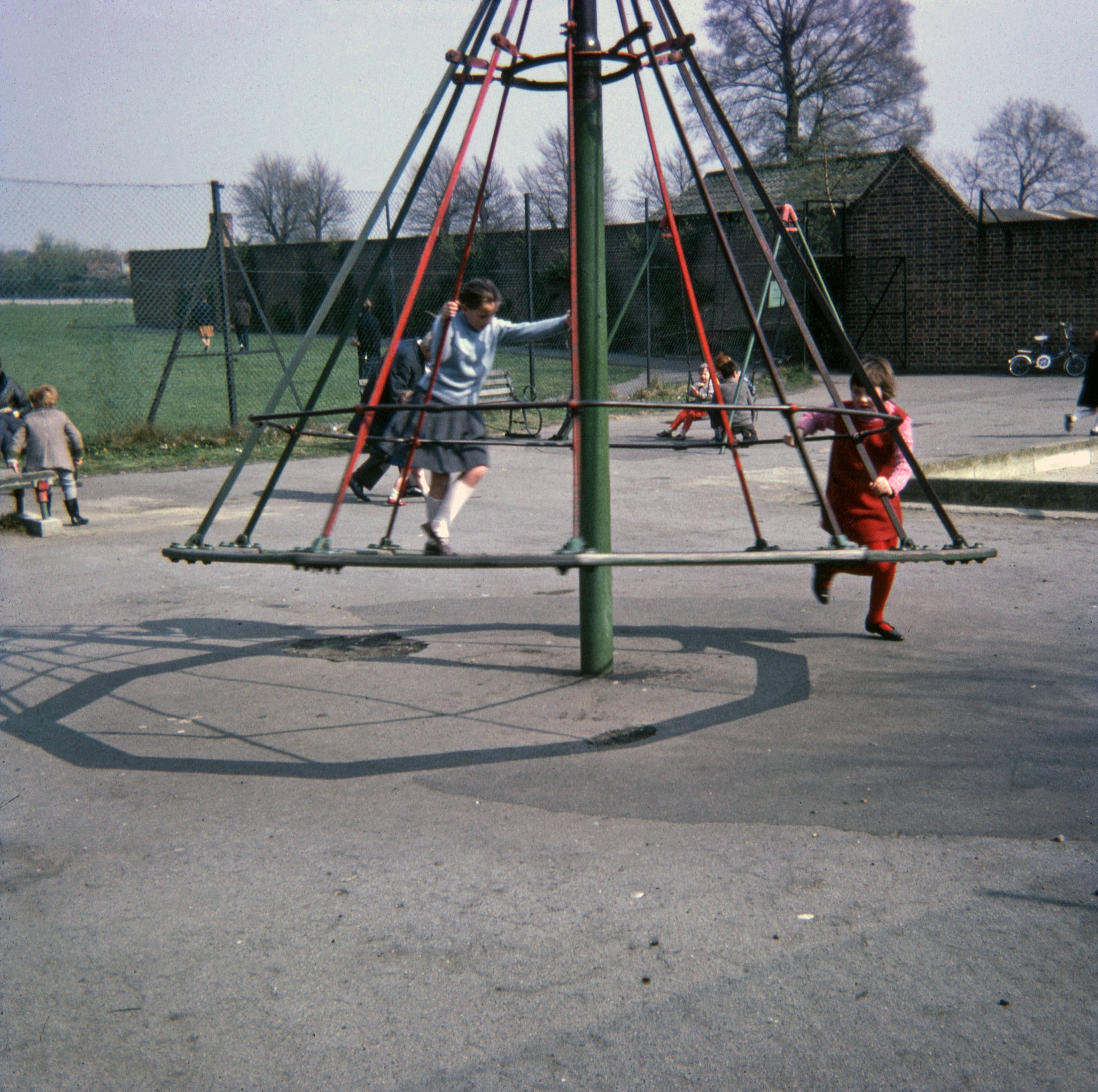 Elaine Temple and Susan Smith on witch's hat, Alexandra Drive