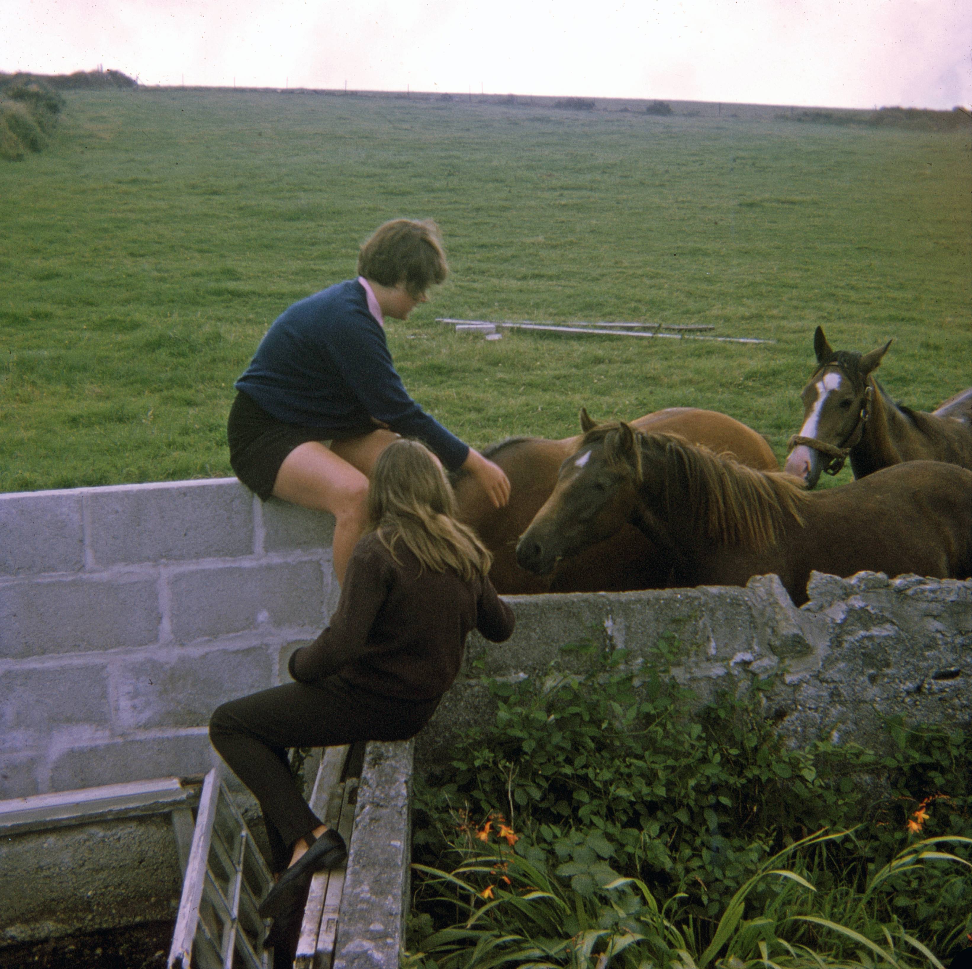 Alison and Elaine Temple with horses, Foxhole